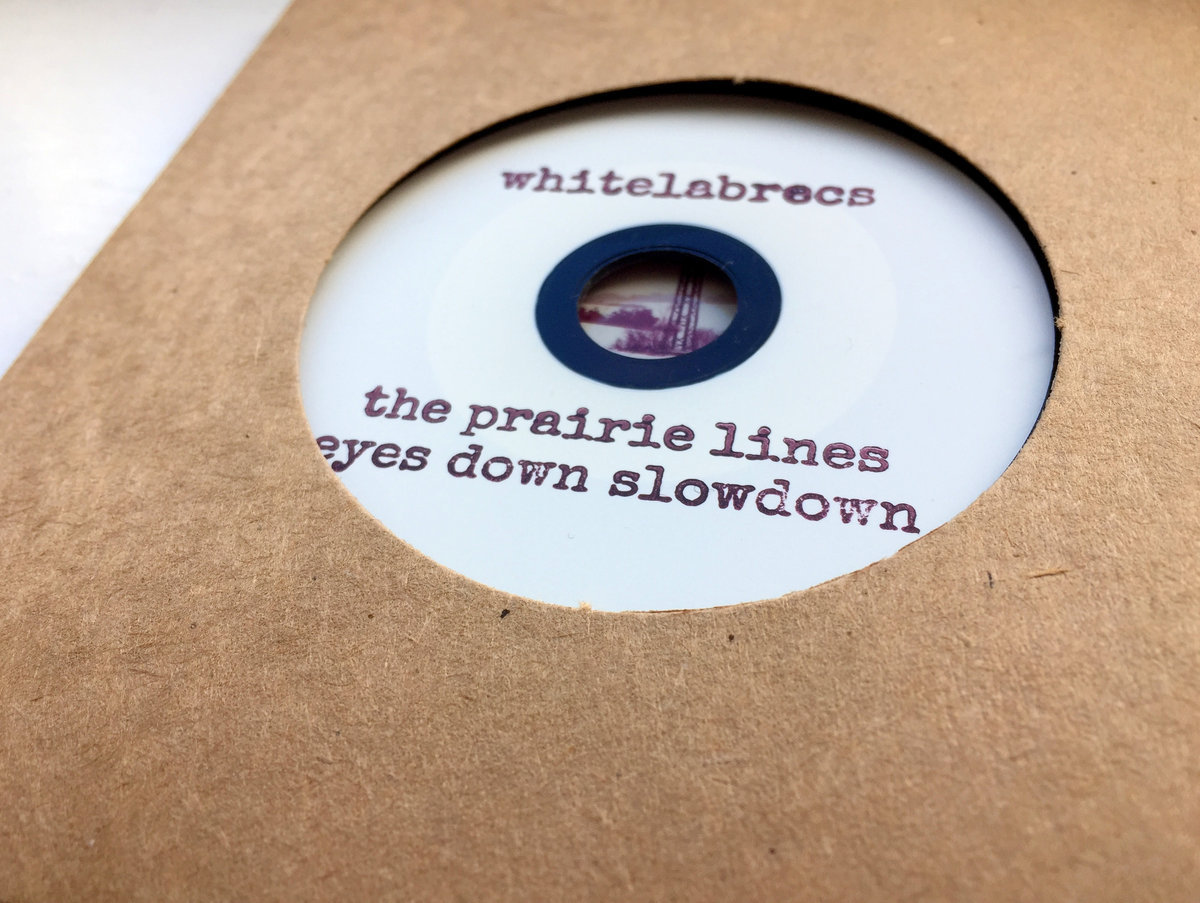 50 x vinyl-effect CDrs with card vinyl-style sleeves, rubber stamped titling, a polaroid print of the cover artwork housed inside a plastic case to keep it looking mint.